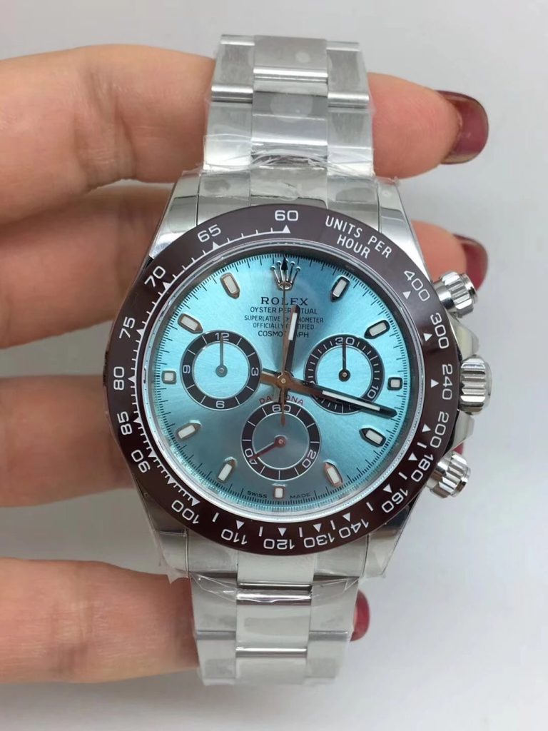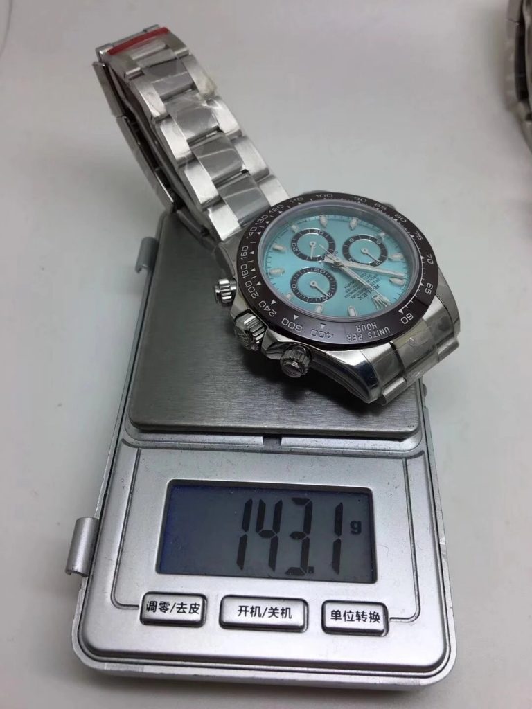 ダイヤルは美しいアイスブルーで、3つのアイスブルーサブダイヤルが配置され、全て機能的に動作できます。シルバートーンの針とアワーマーカーにスイス ブルー スーパールームを塗布し、暗所でも優れた視認性を確保しています。ダイヤルのサンレイパターンは、NOOB工場の職人たちが時間をかけてデザインした力作で、高級感あふれる質感を実現しています。重さは約143gと本物に近く、ソリッドなステンレス製ケースとブレスレットのおかげで、着け心地が抜群です。ブレスレットはフリップロッククラスプ付きで、防水性も50mを誇ります。ロレックス ディトナ スーパーコピーとして、NOOB版は他の工場製品の欠点を克服した完璧なバランスです。